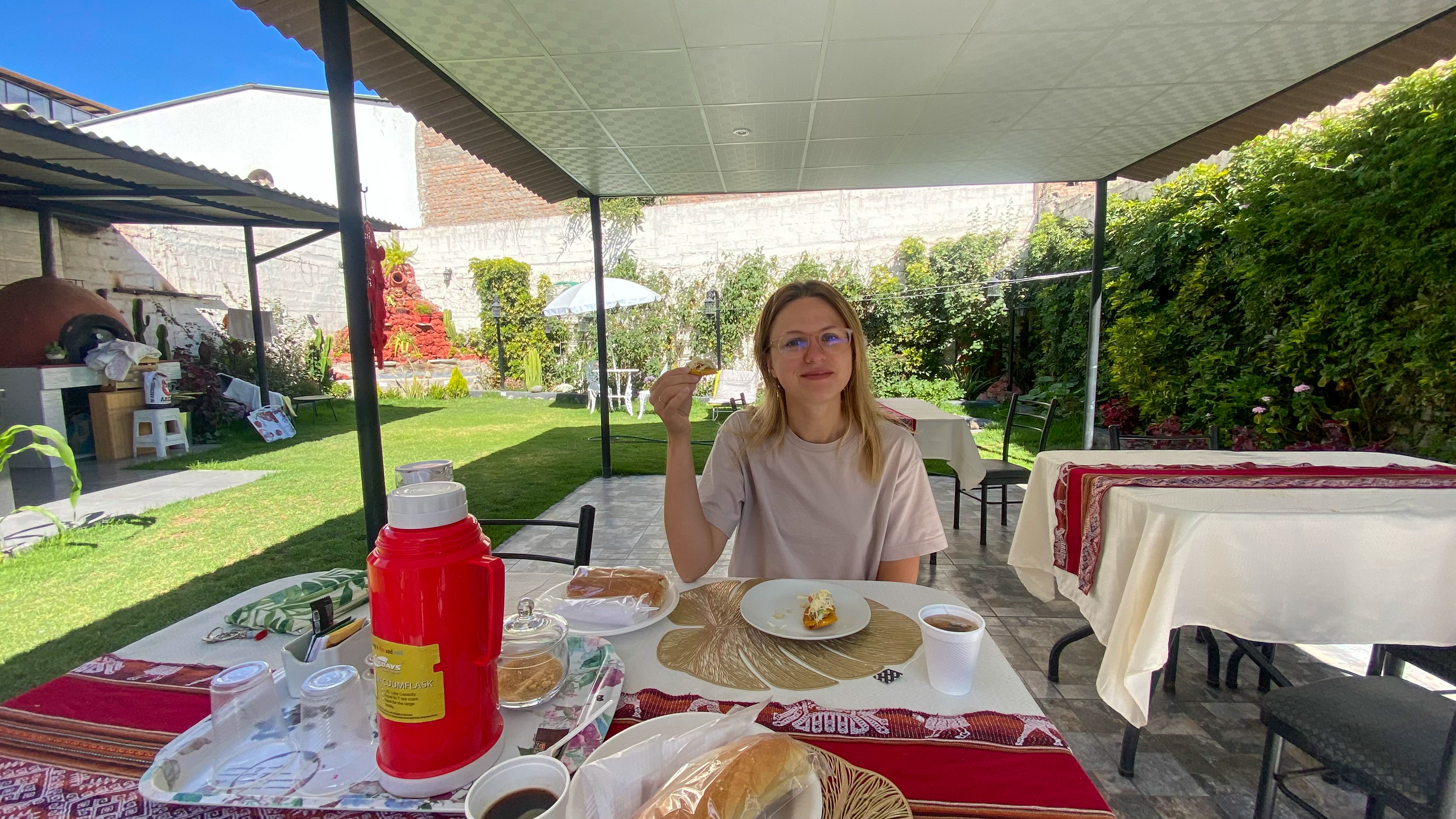 We started the day having breakfast in our hotel that is run by a couple from Venezuela and Peru. The husband who is from Venezuela told us a lot about the food and brought to taste various snacks.