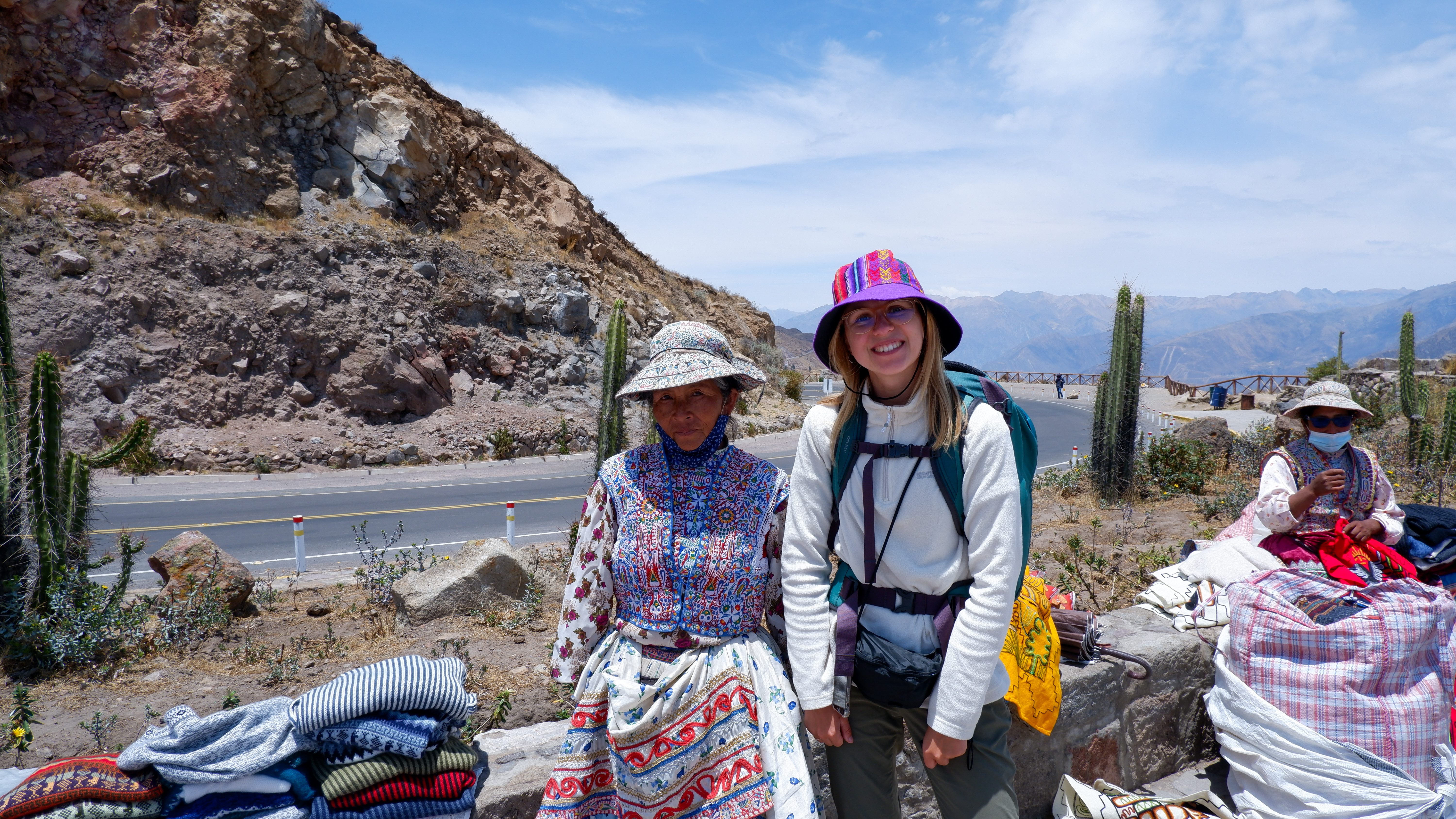 The hike was unexpected, pretty tough but we didn’t lose our spirit. The views were incredible which we wouldn’t have been able to see and appreciate otherwise. The cars and vans passing by were beeping and offering a ride but taking it was out of the question. When we reached the highest part of the road, Gabriele bought a colorful hat from a local Peruvian woman 👒.