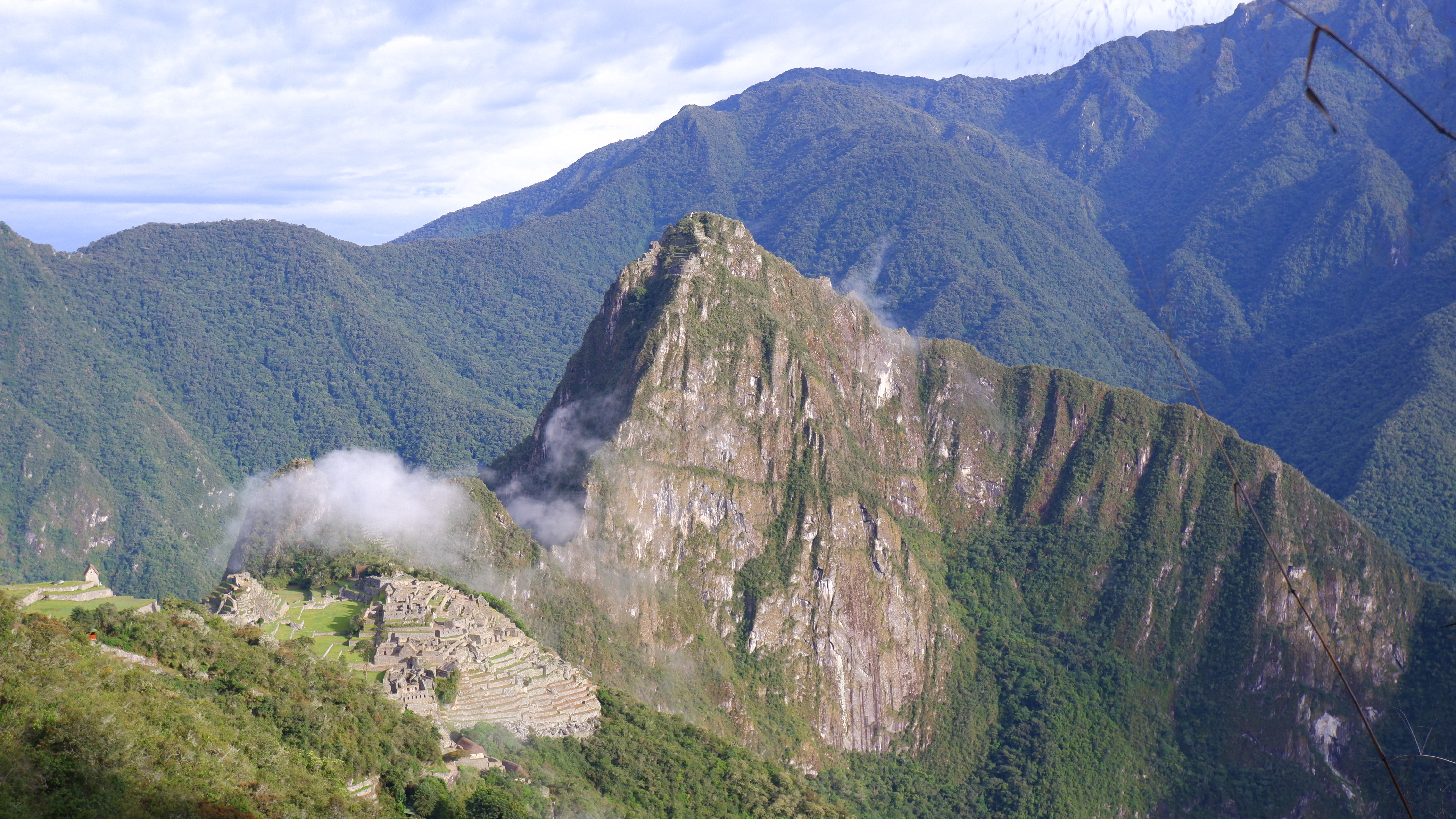 When we passed the checkpoint it was all about being fast. The goal was to arrive at Machu Picchu before people who come by trains and buses. We were absolutely flying throughout the trail for more than an hour, it felt as if the last three days were just a preparation for the last day’s sprint. We reached a midway point Sun Gate. There all the hikers were congratulating each other as we saw Machu Picchu for the first time from far away. This point can only be reached by people going Inca Trail. Our guide was amazed, he told that we are the first group since the beginning of September who didn’t have any clouds and fog and could see Machu Picchu from the Sun Gate.