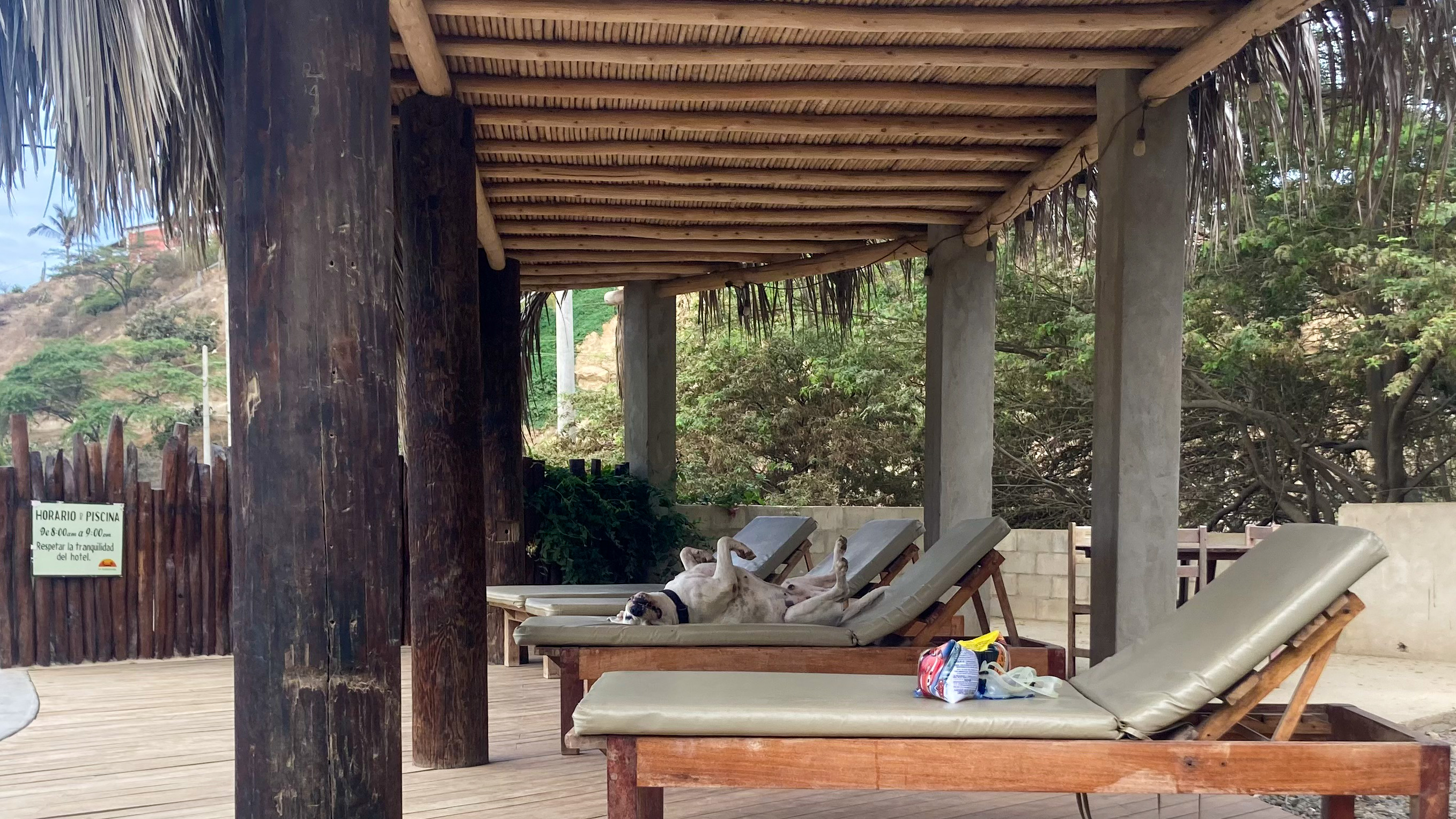 Breakfast, exercise, beach, books, fresh juice, ceviche, and repeat 🔁. We enjoy our rhythm here. One thing that is also certain in Peru and especially here in Máncora is that dogs are living their own lives and they will never pass the opportunity to say hi 🐶. The hotel dog is excited every morning to check what we have for our breakfast and after that goes to lay down on the chairs by the pool.
